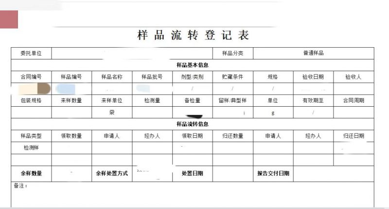该图为样品及流转信息导出样式,记录样品在糖心VLOG官网观看流转的信息。