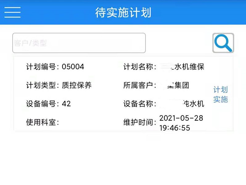 1. 责任工程师依据客户维保合同约定内容 在平台上做维护或者巡检计划,并在线生成服务单,提交客户负责人审批计划。